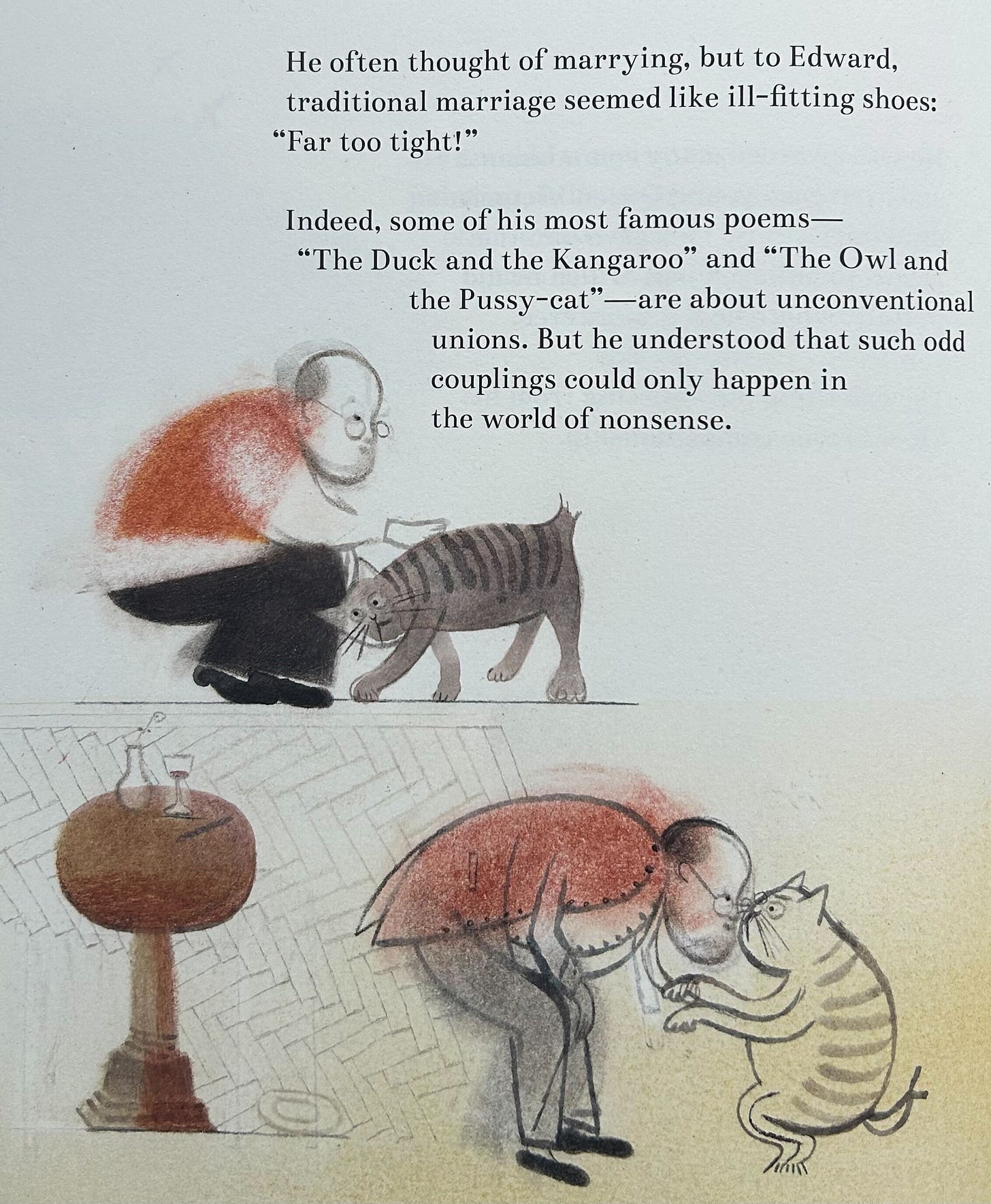 Hill's deep knowledge of and love for Lear transforms what could have been a static portrait into something vibrant and alive. Rather than presenting a distant historical figure, Hill invites us to walk alongside a man whose struggles with depression, social anxiety, and the search for belonging feel startlingly contemporary. In a recent interview with Betsy Bird for the School Library Journal, Hill shared, "times have changed, but the fundamental challenges of growing up haven't. Lear met kids where they were, made them laugh, and showed them how the imagination can be an antidote against boredom, sadness, and injustice."
